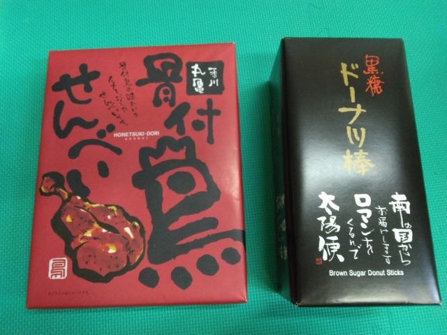 年末渡しそびれた道院長からの本山土産と、熊本に帰省していた中山一家からのお土産を山分けしました。