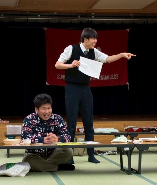 阿羅漢会=食事会の前で、全員が発表出来なかったので、中高生や若手幹部に発表してもらいました。