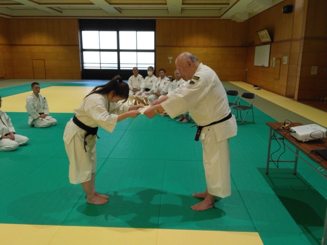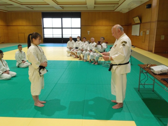 中拳士三段受験の詩織拳士の相方を務めたモエ助教、同日指導者養成コースを修了しました。