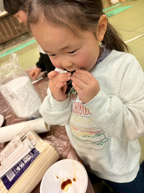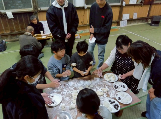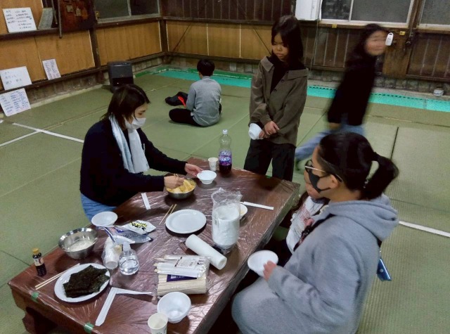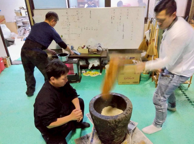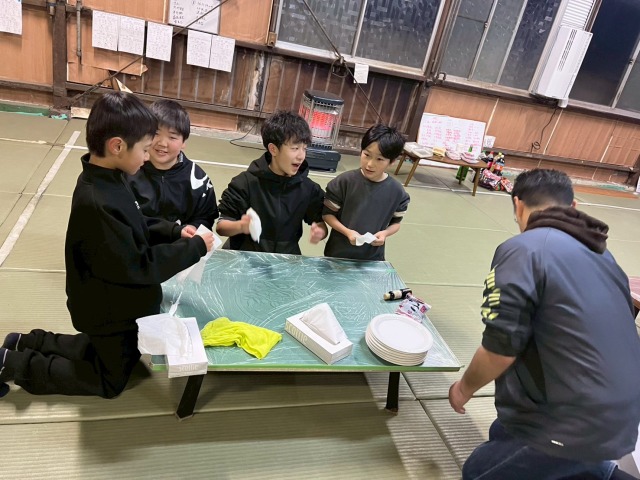 その間に拳士や保護者はあんこ球をつくったり、きな粉や大根おろし海苔の準備などをします。