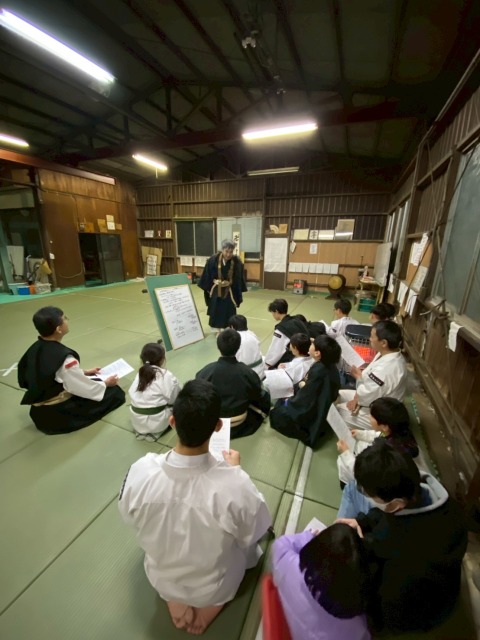 門信徒代表挨拶の後に軽めの基本修練を行い、副道院長による法話です。